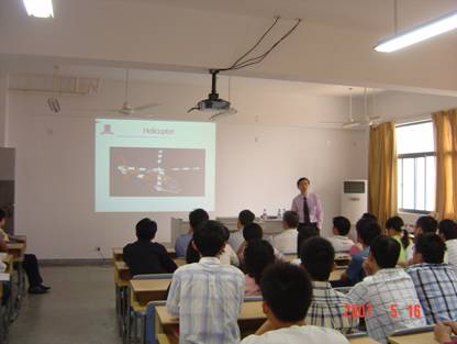 任杨教授,钟志杰教授介绍了香港中文大学,尤其是自动化与计算机辅助工程系及研究生招生情况,廖维新教授做了题为“Vibration control and energy harvesting using smart materials”的学术报告。