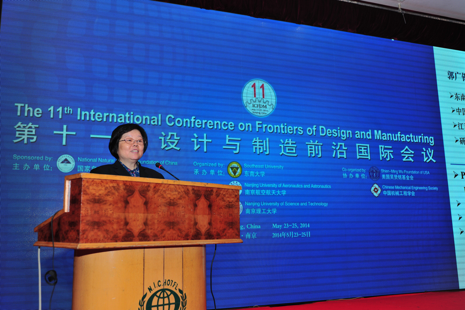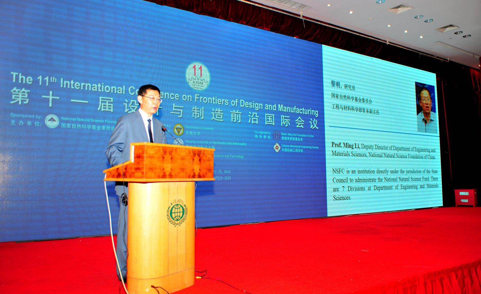 由国家自然科学基金委员会主办,东南大学、南京航空航天大学和南京理工大学联合承办,美国吴贤铭基金会、中国机械工程学会协办的第十一届设计与制造前沿国际会议(ICFDM2014)于2014年5月23至25日在南京隆重召开。