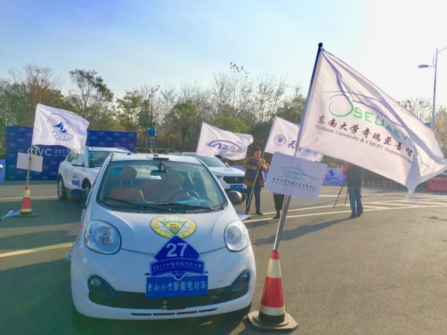 参加此次比赛的东南大学奇瑞至善智能车队的队员全部来自机械工程学院,分别是叶建伟、朱卫刚、吴丛磊、王晓龙、唐卓人、刘好、刘帅鹏、吴愿、马健、刘赢、邹伟、薛培林等研究生。他们秉持着永不放弃、勇攀高峰的精神,克服了时间紧、任务重的挑战,冷静高效地解决了接连出现的突发事故,顺利将参赛原型车进一步研发改进。他们紧握着不怕吃苦、精益求精的品格,顶着上海连日的大风降温,在测试和比赛场地反复对参赛车辆进行调试,最终圆满完成了赛前制定的目标,为东南大学赢得殊荣。