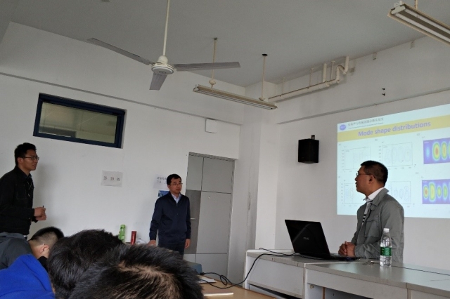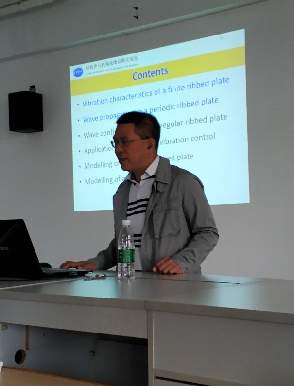 本次讲座主要介绍了对不同边界条件夹筋板结构振动模型的求解过程和求解方法。讨论了夹筋板结构的振动特性,周期/非周期结构的波传播特性以及主要控制机理。林教授以船舶的振动模型为例,介绍了振动控制在实际工程中的应用和意义,并与提问的同学展开了深入讨论,让我院学生对振动控制有了新的认识。