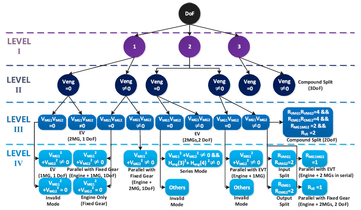 (2)团队基于近期围绕混合动力汽车构型优选方面所作的研究工作,在Applied Energy上发表综述性文章,对所有可行构型与方案进行分类与总结,并对各构型方案的优缺点进行讨论。