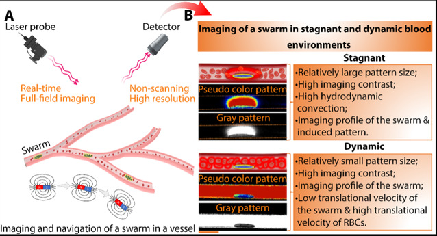 近日,万搏在线网站王乾乾教授与国际合作者在微集群操控领域取得重要进展,其研究成果以“Tracking and navigation of a microswarm under laser speckle contrast imaging for targeted delivery”为题发表在国际权威学术期刊Science Robotics上(论文链接:https://www.science.org/doi/10.1126/scirobotics.adh1978)。
