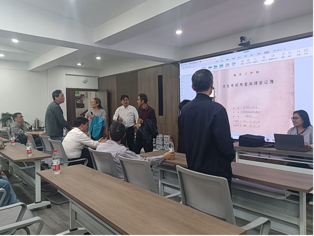 下午,在机械楼南高厅会议室,薛澄岐教授与24余名校友齐聚一堂,参加由机械工程学院校友办秘书闫焱主持的座谈会。会前,闫老师展示了24801班《学生考试考查成绩登记薄》,校友们通过翻阅名单和花名册,回顾专业课程,畅谈当年的学习情况与专业收获。