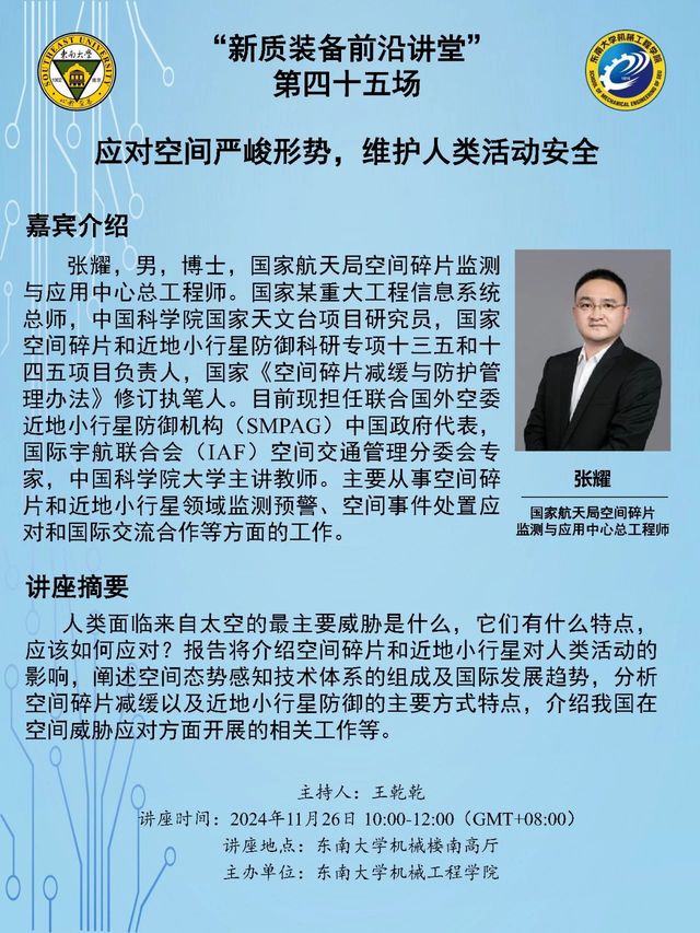 “新质装备前沿讲堂”第四十五场:张耀教授——应对空间严峻形势,维护人类活动安全