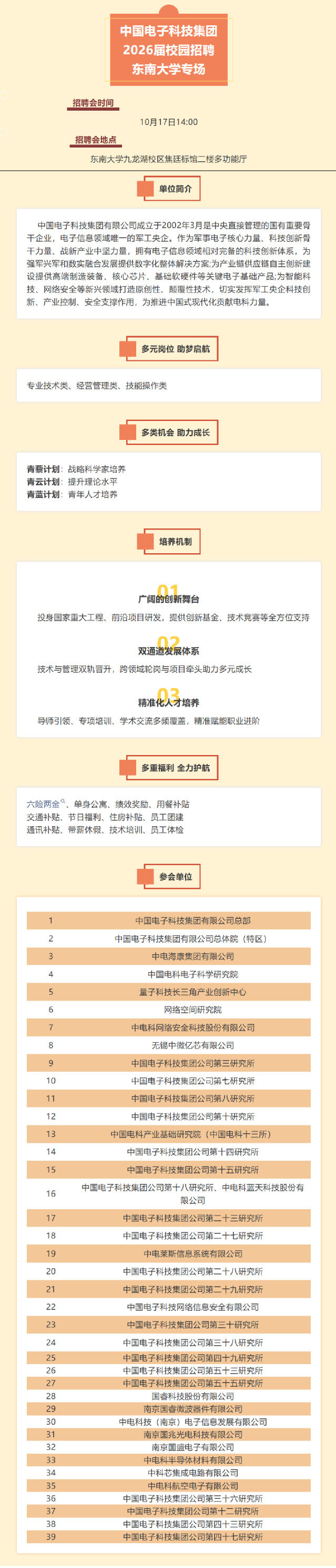 招聘会 | 中国电子科技集团2026届校园招聘东南大学专场
