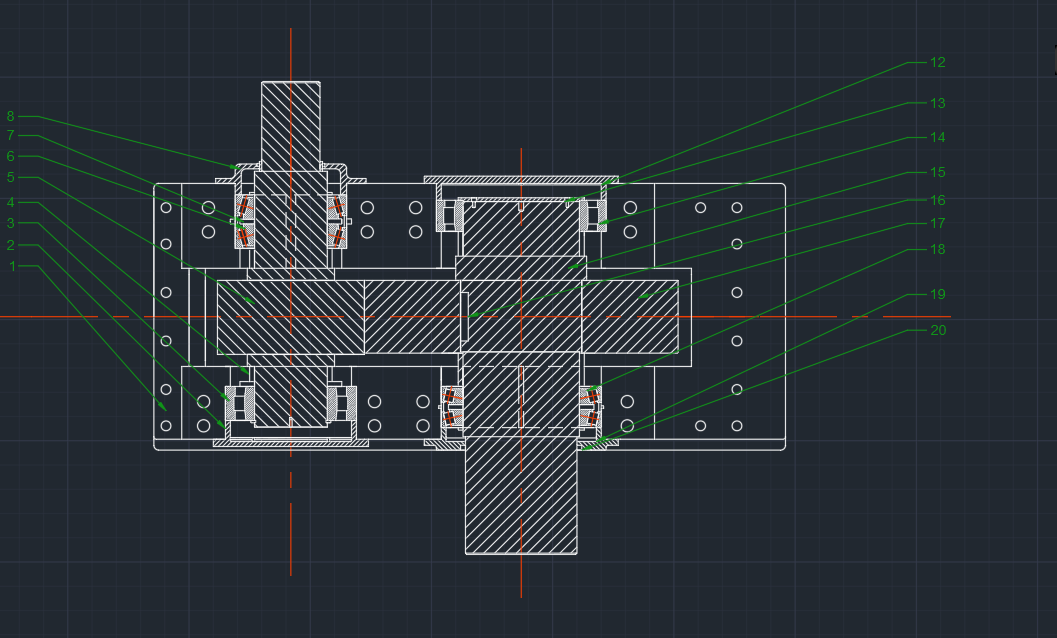 项目成果:小组完成一个一级齿轮增速箱的设计,并对其中的轴、轴承、齿轮进行了校核计算,并初步完成了齿轮增速箱的二维、三维建模。