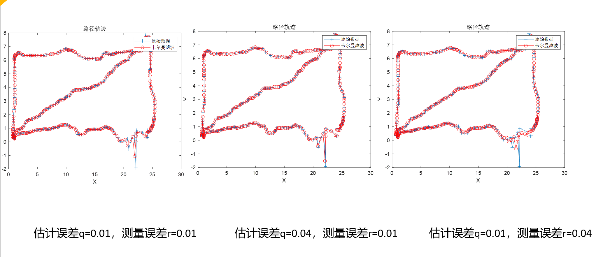 3.运用均值滤波和卡尔曼滤波分别对得到的数据处理以减小噪音,并通过改变卡尔曼滤波中的估计误差和测量误差来提高定位精度。